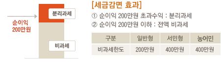 | 비과세 한도 | 200만 원 | 400만 원 |
