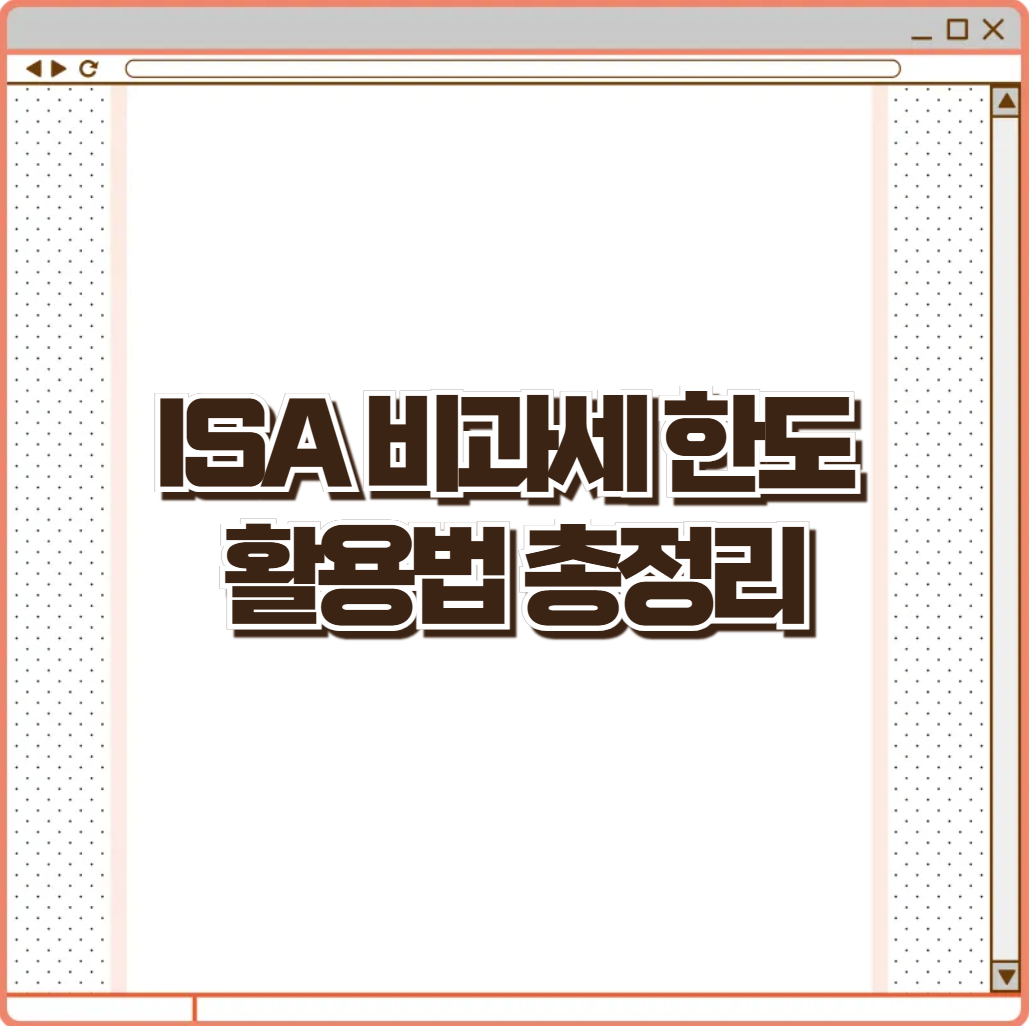 안녕하세요! 오늘은 절세에 진심인 분들이 반드시 알아야 할 ISA(개인종합자산관리계좌)와 비과세 한도에 대해 깊이 있게 파헤쳐보겠습니다. 세금 절약은 ‘지출 없는 수익’이라고 하죠. 이 글 하나면 ISA의 비과세 혜택, 가입 조건, 활용 전략까지 한 번에 이해할 수 있습니다!